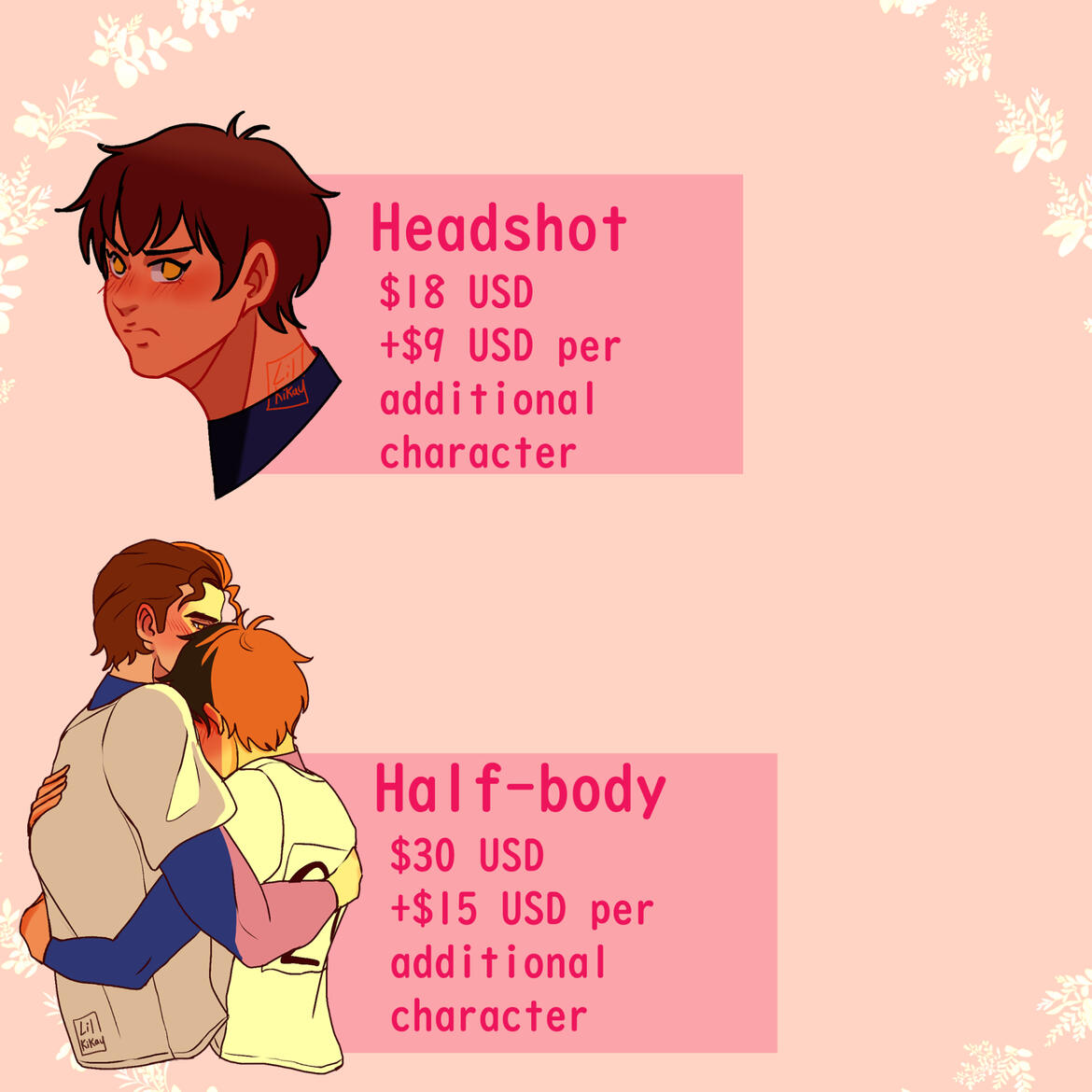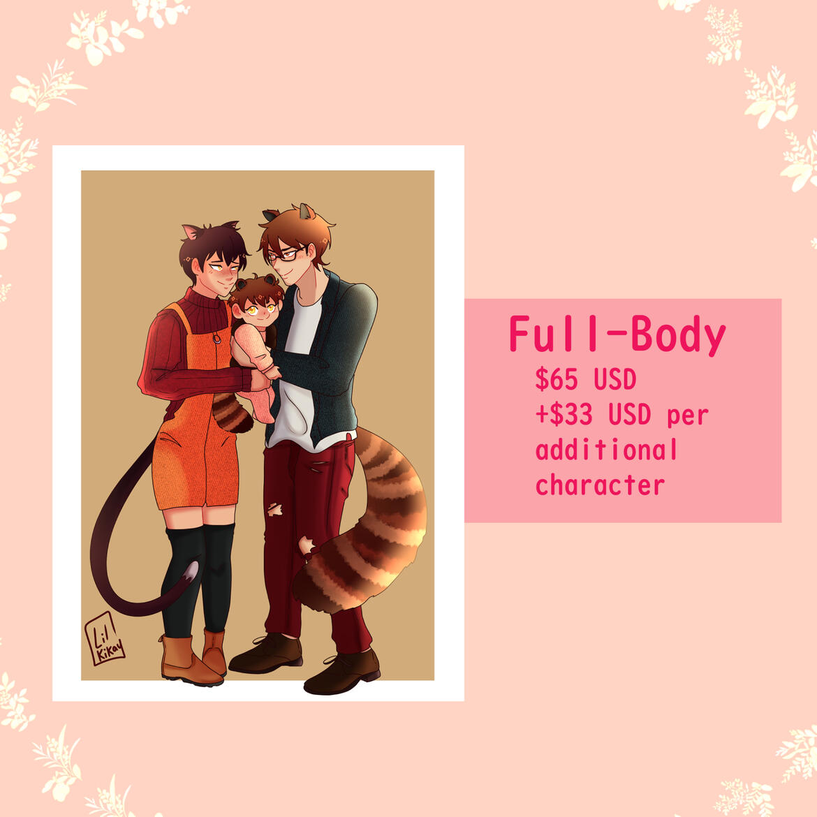 Note it is normal for commissions to take 1-2 weeks to get complete. Some days the art just doesn't flow and I want to provide you with my best, so please understand that. Also the time it takes depends on when you respond to DMs with wips and questions.